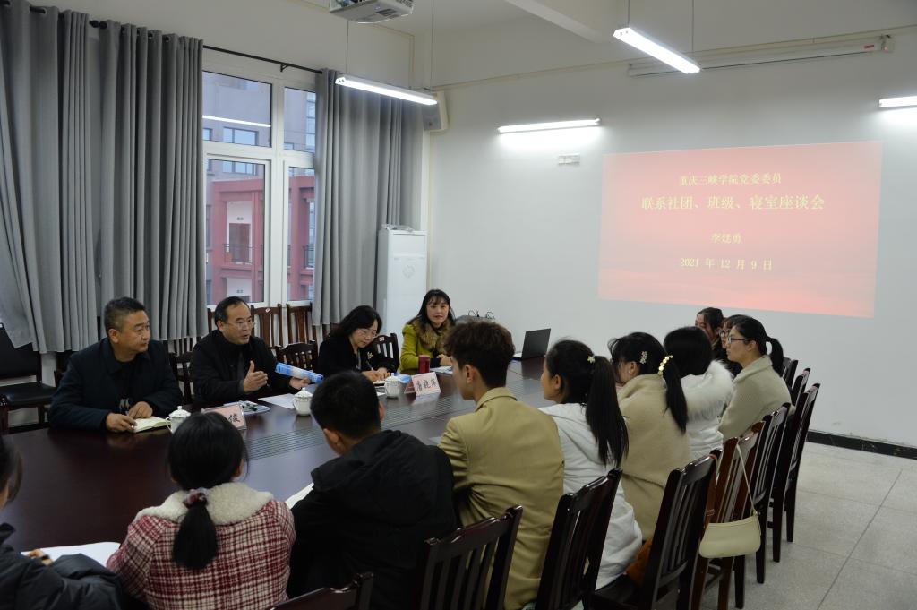为深入促进校领导与太阳成集团学子的交流沟通,引领学生不断提高综合素养,12月9日下午在博学楼3-409,党委书记李廷勇与联系的社团、班级、寝室及学生党员代表进行了亲切交流。太阳成集团党总支书记唐晓萍、副院长李俊、学工办主任兼团总支书记熊维娟,及部分学生代表参加了座谈。