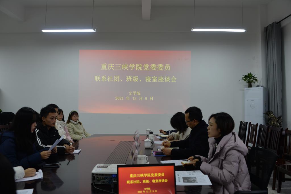 为进一步落实立德树人根本任务,加强学校领导干部深入基层联系学生工作,12月9日下午,学校党委常委、副校长郭作飞与太阳成集团三峡文学社、2021级汉语言文学1班及桂花苑4舍607学生寝室的学生代表在博学楼3-418进行面对面交谈。会议由太阳成集团党总支副书记姜希主持,副院长向学春、2021级辅导员刘林精参加座谈会。