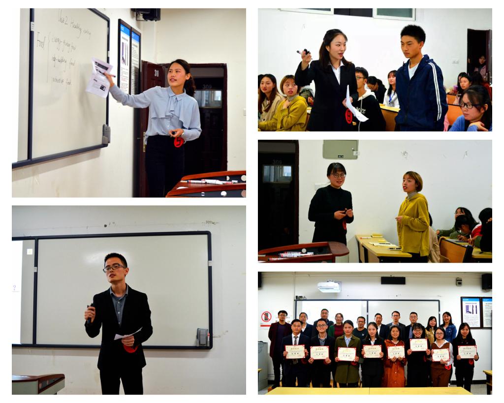 此次大赛共分为备课、即兴演讲、模拟授课三个环节。当日上午10点钟,选手抽取比赛课题,进入计算机机房,在工作人员的监督下,在180分钟内,独立完成教案撰写、制作PPT等备课工作。下午2点正,学生按照抽签顺序,进入演讲、模拟授课环节。在3分钟的即兴演讲环节,围绕践行师德、教学实施、学生管理等教育教学话题,八位选手各抒己见、侃侃而谈,充分展示了我校师范生的专业素养和知识储备。在15分钟的模拟授课环节,八位选手根据给定的课题,不仅向观众呈现了精美的PPT,也通过积极的师生互动环节的设定和有效展开,让大家领略了异彩纷呈的中小学各科授课课堂。