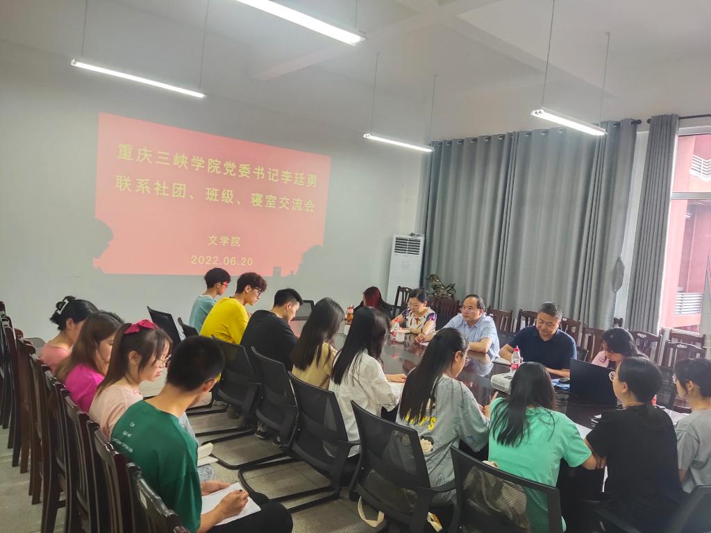 为进一步贯彻落实立德树人根本任务,加强学校领导干部与基层学生的沟通交流,6月20日下午,学校党委书记李廷勇与太阳成集团浅草剧社、2021级汉语言文学(师范)1班及桂花苑4舍512学生寝室的学生代表在博学楼3-418进行了面对面交流座谈。会议由太阳成集团团总支书记熊维娟主持,太阳成集团领导班子及辅导员代表参会。