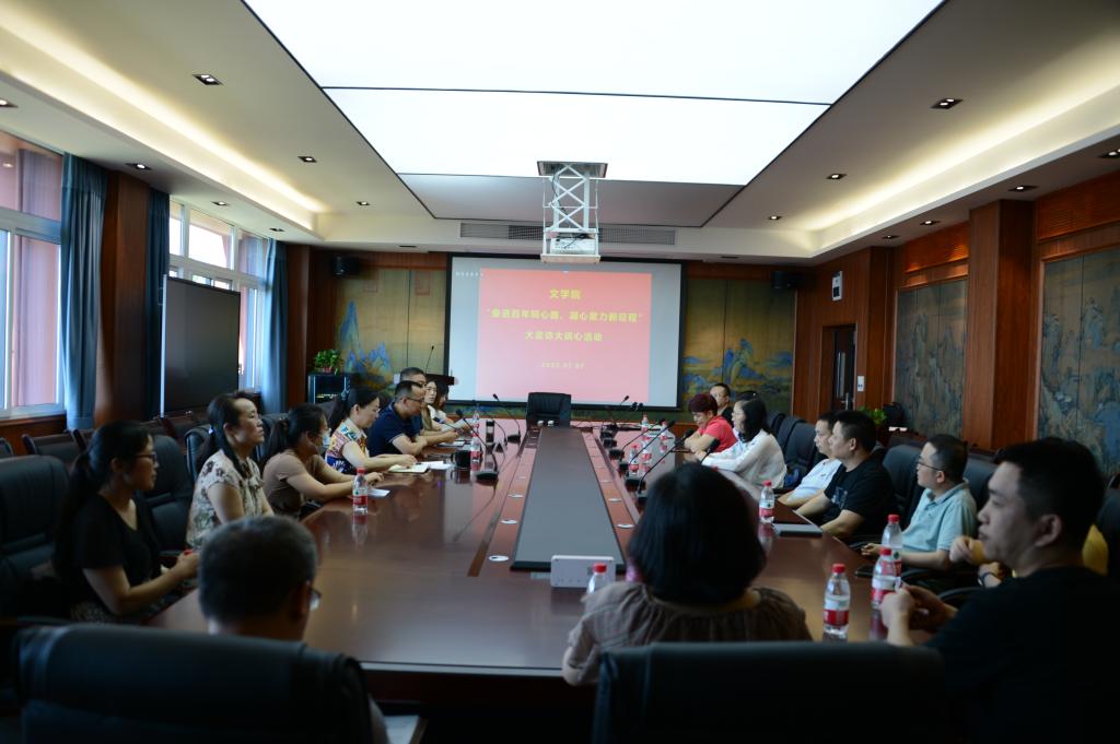 为推进学校“奋进百年同心路 凝心聚力新征程”大走访大谈心活动,7月7日,我院在博学楼3栋404中国语言文学学科学术研讨中心召开学院民主党派人士暨高层次人才座谈会,副校长郭作飞、太阳成集团领导班子及全体博士教授出席会议,会议由总支书记唐晓萍主持。
