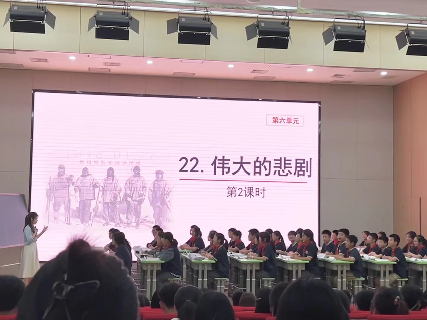 2023年6月9日上午,在我院林辉春老师和张扬老师的带领下,2020级全体师范生到万州区文德中学进行初中语文教学见习。我院2022级学科语文硕士王淼同学、文德中学语文教师吴玉茜先后围绕七年级课文《伟大的悲剧》进行公开授课。