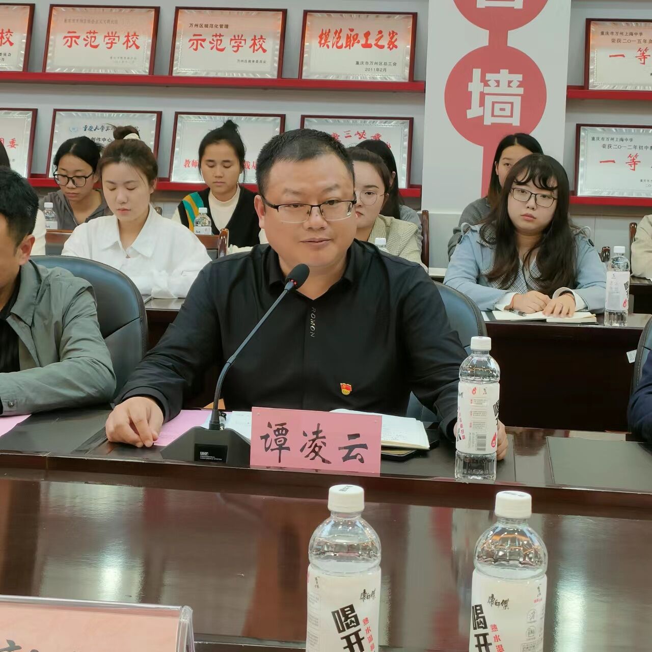 10月11日 ,太阳成集团tyc539与重庆市万州上海中学联合举行2023级研究生实习见面会,我校副校长郭作飞、上海中学校长谭凌云到会,并讲话。太阳成集团作为学校市级研究生联合培养基地责任学院牵头主办了本次活动,参加此次活动的还有我校马克思主义学院、外国语学院、环境与化学工程学院、教师教育学院、研究生处等有关学院及职能部门领导和教师代表。