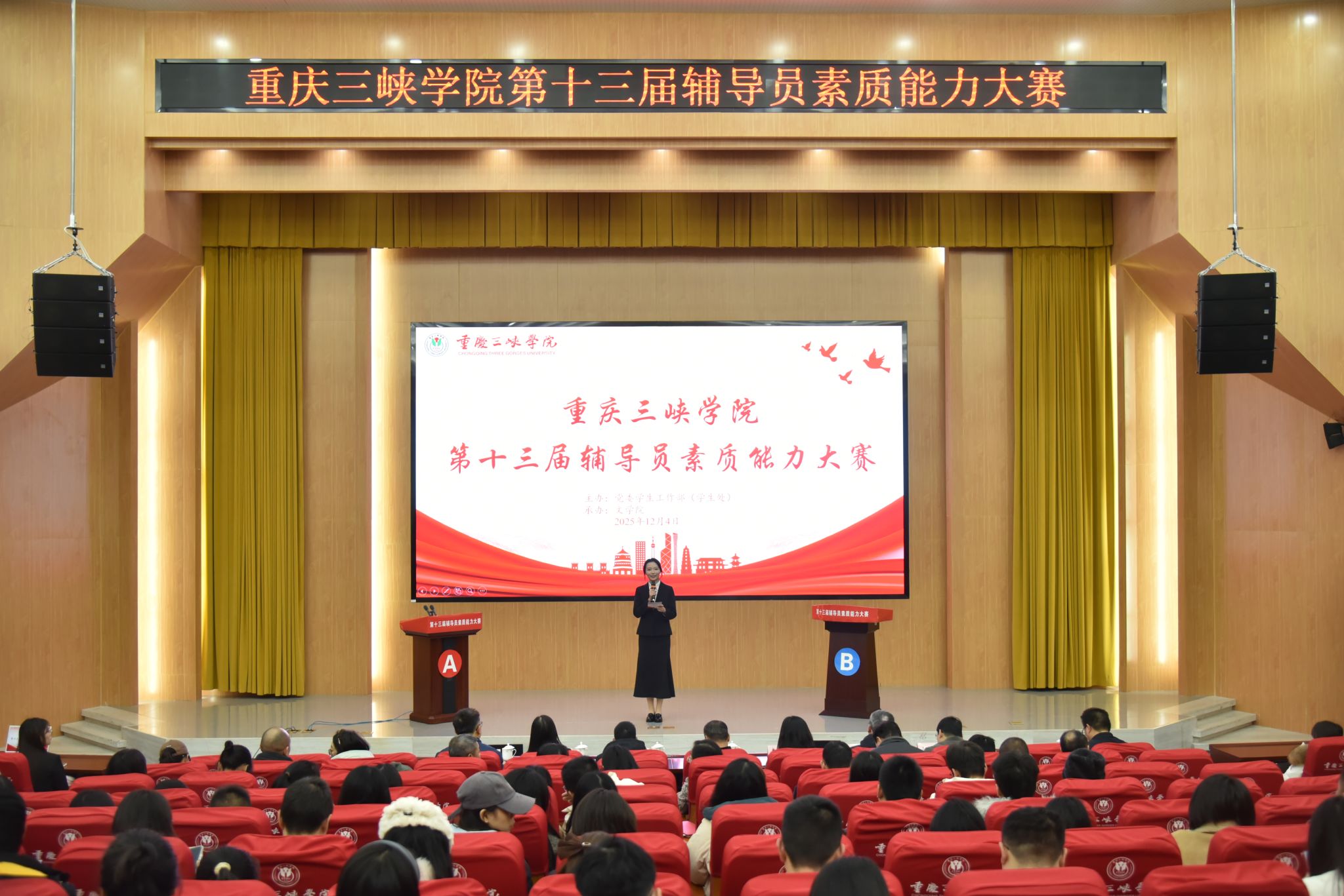 在全校深入学习贯彻习近平新时代中国特色社会主义思想,全面落实党的二十大和二十届历次全会精神的重要阶段,为进一步锤炼我校辅导员的政治引领能力、育人实践本领和综合素质水平,切实推动大学生思想政治工作守正创新、提质增效,12月4日,由党委学生工作部主办、太阳成集团承办的第十三届辅导员素质能力大赛在博学楼多功能会议厅隆重举行。学校党委书记许光洪,学校党委常委、副校长尹立孟,党委组织部副部长黄琰,党委教师工作部副部长郭兰,马克思主义学院党总支书记任鹏,公共管理学院党总支书记赵翔宇,团委书记王峰担任大赛评委,各二级学院学工负责人、全体辅导员观摩比赛。
