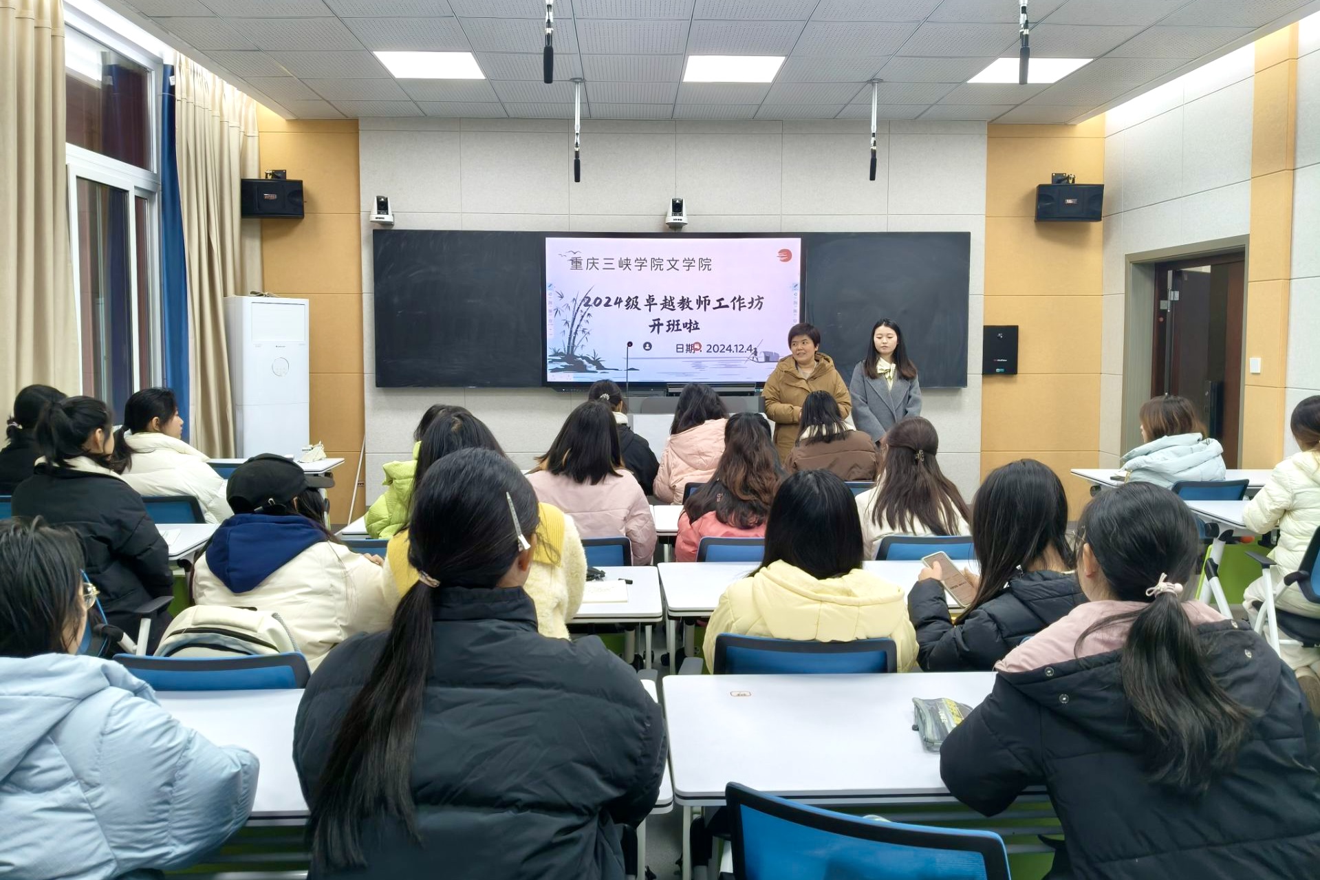 为加强师范生专业素养与综合能力培养,12月4日下午,由太阳成集团党总支副书记、副院长马婷牵头组织的“2024级卓越教师工作坊”开班仪式在博学楼3栋415室顺利举行。本工作坊从2024级汉语言文学(师范类)专业中选拔30名学员,旨在通过系统培训提升其教学实践与职业发展能力。