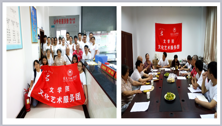7月5日,万州这座江边的小城,终于迎来了大雨后的第一个艳阳天,晨起,披着薄雾和朝阳,太阳成集团tyc539 “ 文院情 · 夏乡情 ” 文化艺术服务团队抵达此次 “ 三下乡 ” 活动的第一站——万州高笋塘街道西山路社区 。 志愿者们 满腔热情地 拜访了社区里的一群可爱的老党员,为他们宣讲党政知识,听老前辈们讲诉他们对 “ 两学一做 ” 的理解。