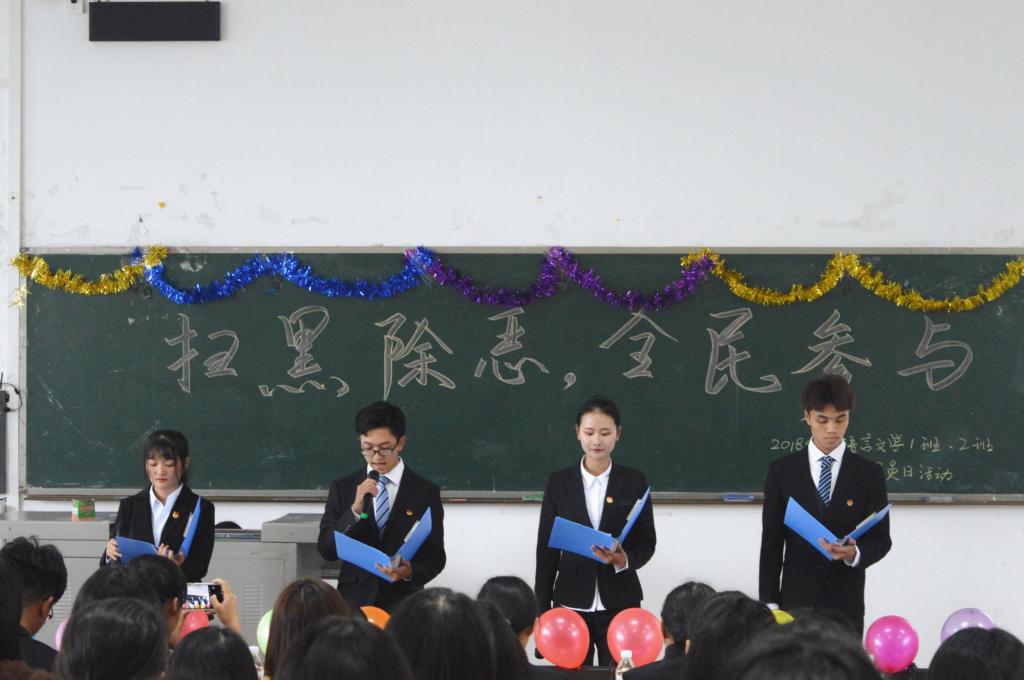 为拉起全面扫黑除恶的旗帜,让大家更深入地了解扫黑除恶知识,10月19日,我院18级汉文一、二班于明辨楼2栋101联合举办了“扫黑除恶,全民参与”团日活动,我院团总支组织部、18级汉语言文学一、二班以及17级汉文一班全体同学参与本次活动。