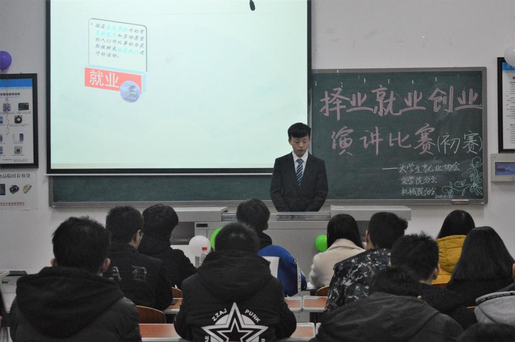 为帮助学生认清最新就业形势,树立正确的择业、就业、创业观,合理规划大学生活,由大学生就业协会太阳成集团分会和机械工程学院分会共同举办的“择业、就业、创业”演讲比赛初赛于11月17日上午在慎思楼5栋307、308室举行。