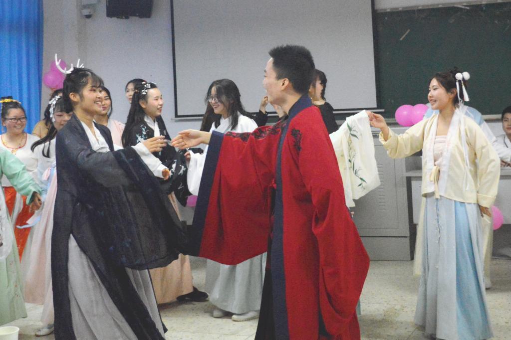 活动中,各类节目形式丰富,清歌古韵、诗词歌赋、丹青妙笔,都展现出溯源汉服社独特的社团风采,赢得现场观众的热烈掌声。“飞花令”、“曲水流觞”等游戏将活动气氛推向高潮,抽签、投壶、木射游戏让现场观众参与其中,增强了活动的互动性。