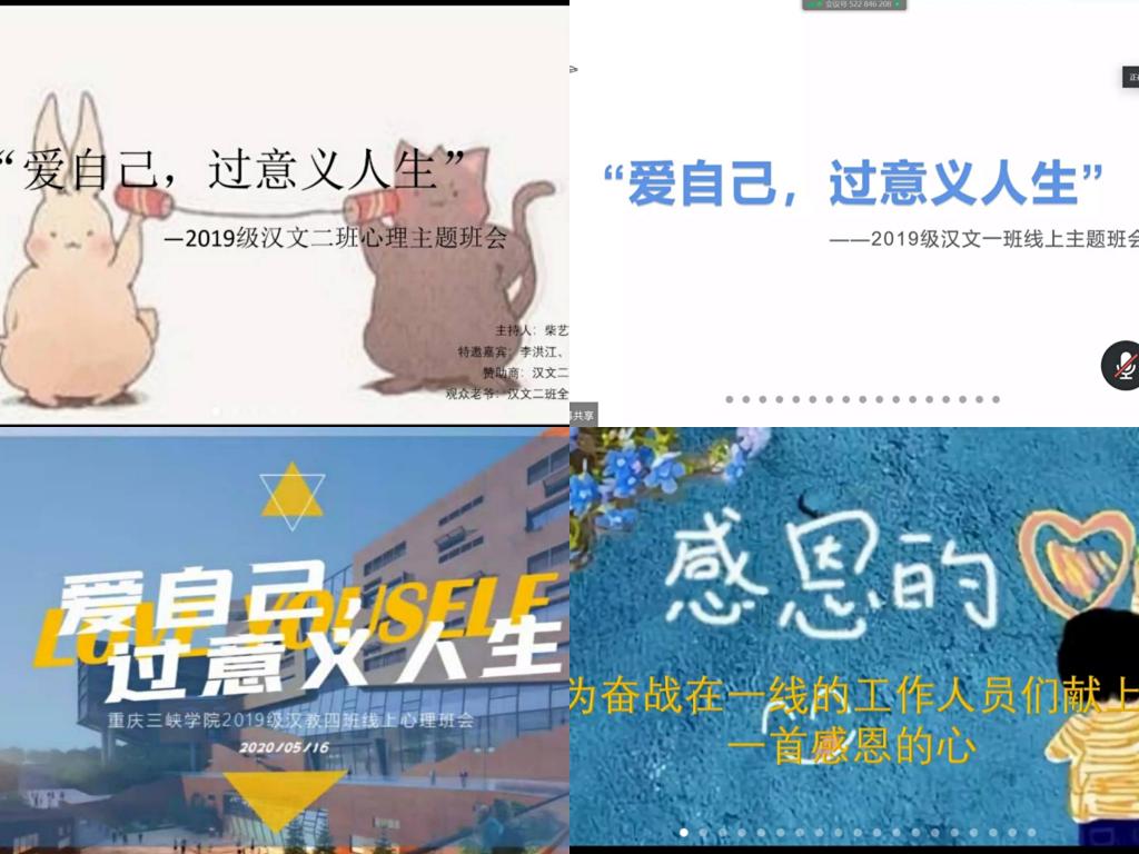 为引导学生积极思考人生意义,以更加饱满的精神面貌迎接返校后的学习和生活,5月16日,我院2019级以班为单位,开展了“爱自己,过意义人生”线上心理主题班会。