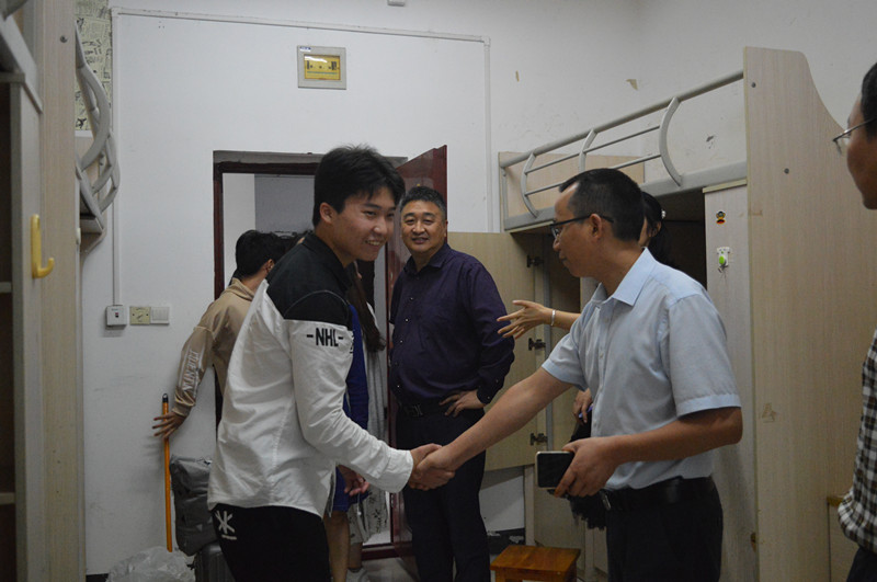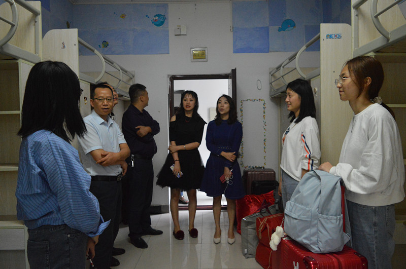 我院院长郭作飞、党总支副书记姜希、副院长李俊、副院长王志清、学工办主任熊维娟以及2020级新生辅导员张悦莅临报到现场检查指导工作,随后,郭院长一行走进宿舍与新生们面对面交流,对新生的到来表示欢迎,并深入了解新生入校后的准备情况及心理状况,并对新生表达了良好祝愿。