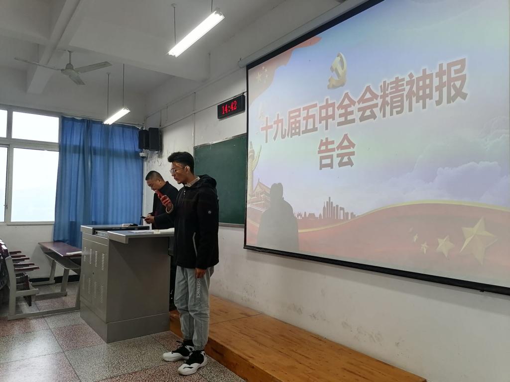 为深入学习贯彻党的十九届五中全会精神,进一步增强我院学子的政治自觉和思想自觉,我院于12月2日下午在明辨楼1教401室召开党的十九届五中全会精神宣讲会。我院2020级汉教4班班长曹雷担任主持人,副院长李俊担任宣讲人,2020级汉教三、四班全体成员参与此次宣讲学习。