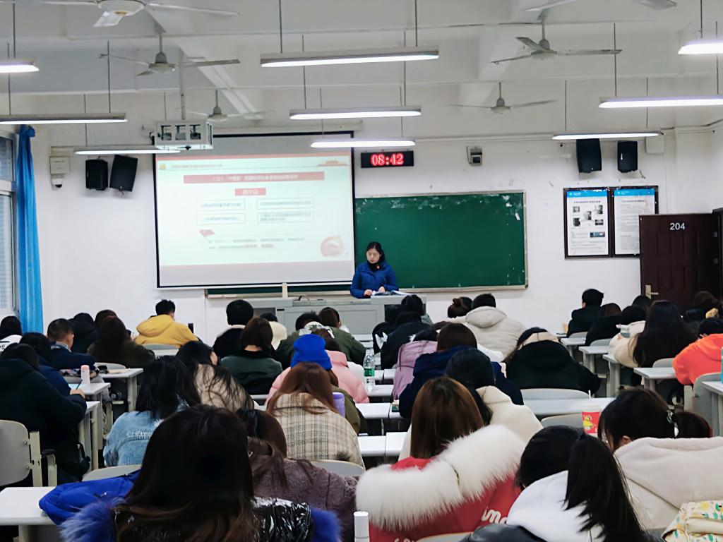 为学习贯彻党的十九届五中全会精神,我院2017级辅导员兼太阳成集团学生第一党支部书记王陈超分别在12月5日于线上对我院2017级学生,12月8日在明辨楼1栋204对2019级汉语言文学(师范)1、2班进行了两场关于党的十九届五中全会精神暨市委五届九次全会精神宣讲会。