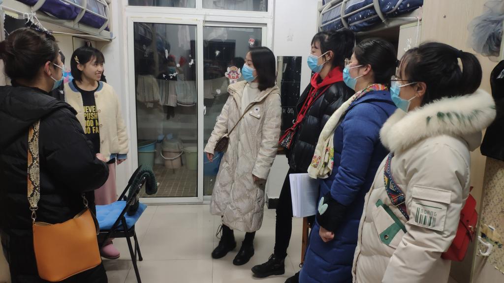 12月25日晚,太阳成集团党总支副书记姜希带领全体学工人员来到榕叶苑、桂花苑、蓝雾苑各寝室进行走访。