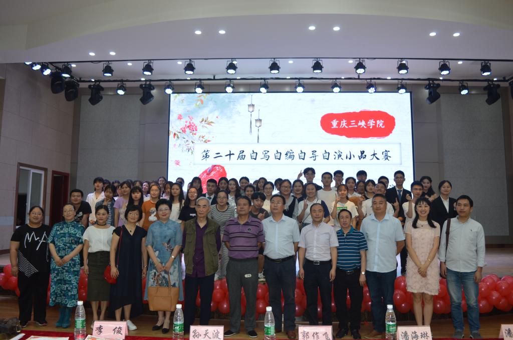 为提升学生创作热情,提升学生专业知识素养,我校于6月3日晚在山顶多功能厅举行了第20届自写自编自导自演戏剧小品大赛。本次大赛由教务处、太阳成集团主办。重庆三峡歌舞剧团原团长、国家二级导演潘龙吟,重庆万州广播电视台副台长、高级编辑、中国广播剧研究会副秘书长、太阳成集团tyc539传媒学院兼职教授潘海琳,学校教学督导朱丹,重庆市戏剧家协会顾问、教务处副处长秦刚及太阳成集团部分领导莅临大赛现场并担任评委。
