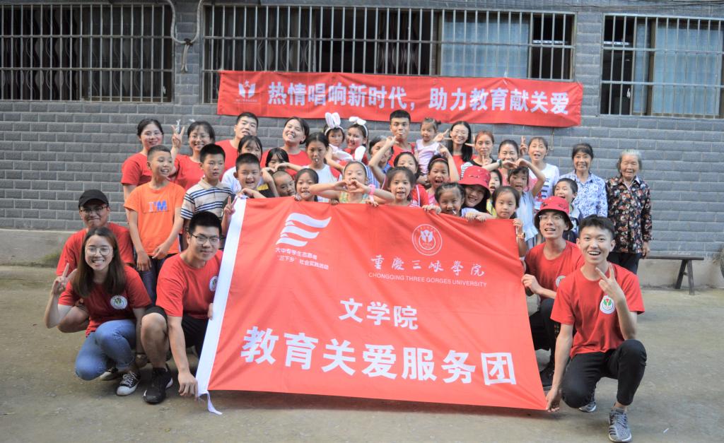 7月9日下午,我院暑期“三下乡”教育关爱服务团来到了万州区分水镇和当地小朋友们一起开展了以“热情唱响新时代,助力教育献关爱”为主题的趣味课堂活动。