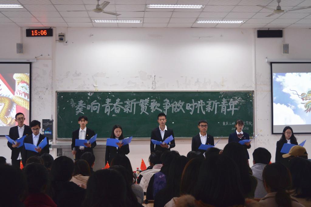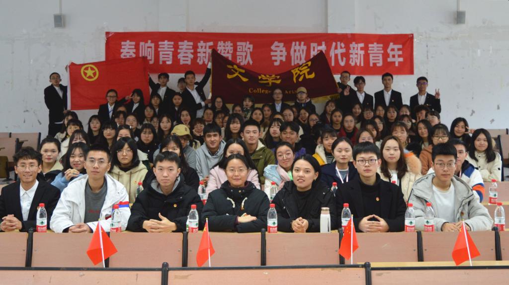 为引导学生树立远大理想,践行社会主义核心价值观,我院于11月28日15:00在明辨楼2教101室举办了“奏响青春新赞歌,争做时代新青年”主题团日活动。主席团成员及2019级汉语言文学(师范类)1班、2班全体团员参加了本次活动。