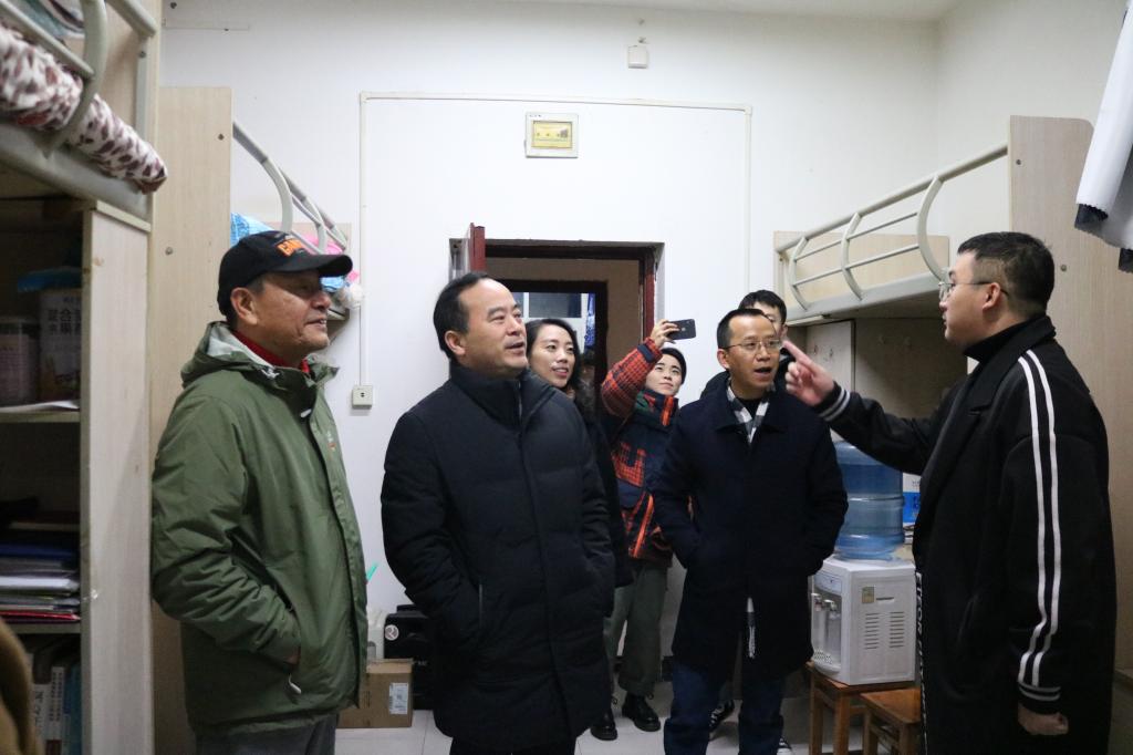 在走访学生宿舍的过程中,李廷勇书记仔细询问了学生的住宿情况,并与我院党政领导一同检查了学生宿舍的内部设施。领导们深入了解了学生的思想动态,鼓励学生努力学习、积极考研,并与学生们交流所学专业的学术问题。同学们热情接待,积极响应。