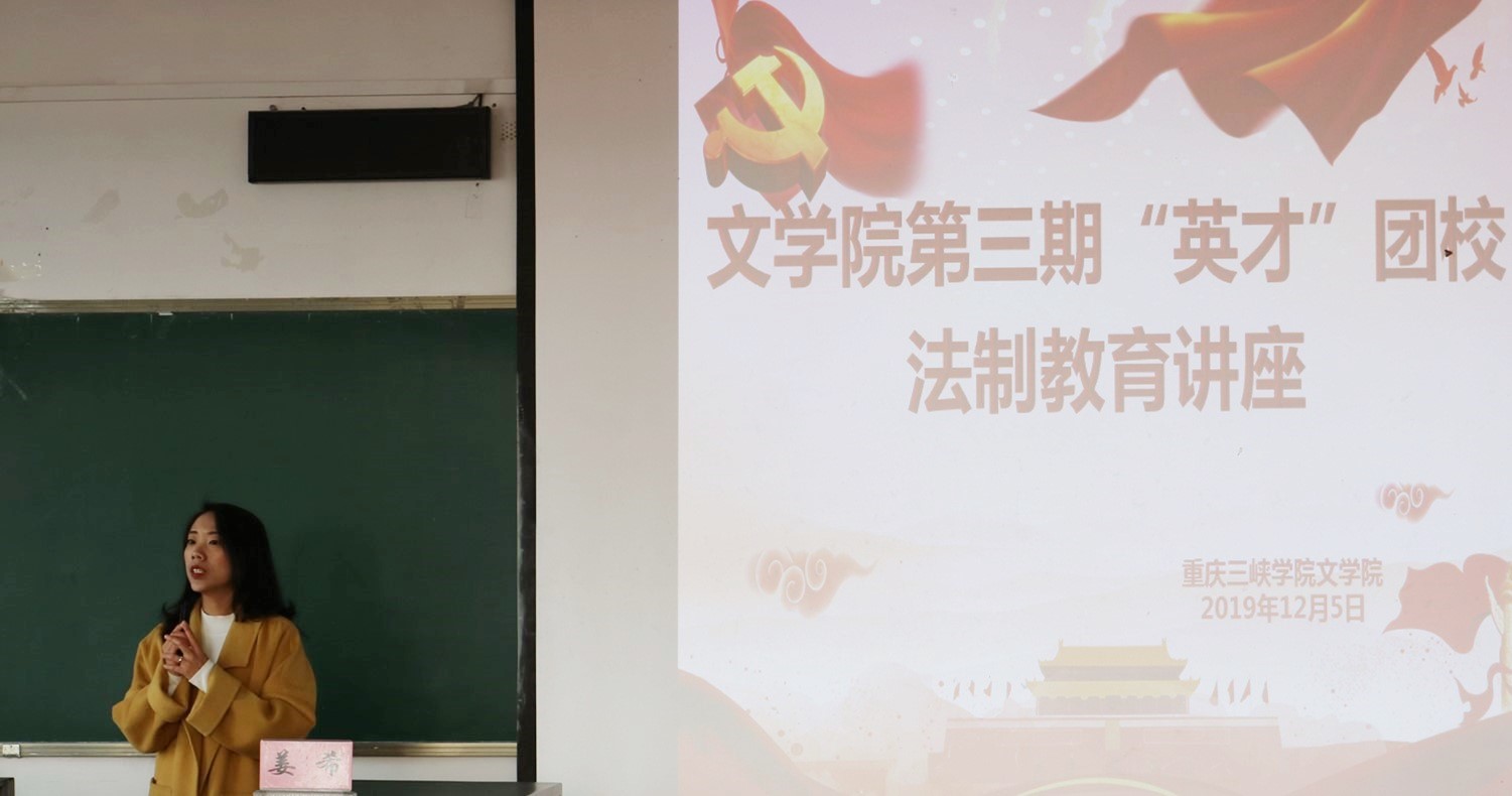 2019年12月1日—7日是我国第二个“宪法宣传周”,为响应依法治国号召,提高学生法律意识,增强学生法制观念,我院特于12月5日在明辨楼1栋401室开展第三期“英才”团校法制教育讲座。本次讲座由我院党总支副书记姜希担任主讲人,第三期“英才”团校全体成员参与。