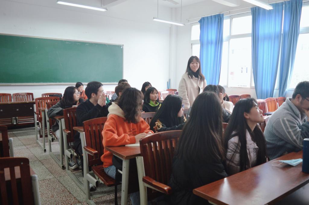 会上,大家通过暖场小游戏进行一次特殊的自我介绍,现场气氛轻松活跃。主持人向大家介绍完本学期的工作安排后,20级各班心理委员依次上台总结上学期的工作,发表自己的工作感想,提出在工作上的困惑。随后,19级优秀心理委员向大家传授自己的工作经验与心得,建议心委与班级同学加强互动交流,建立彼此间的信任,为大家提供了解决工作问题的方法。另外,优秀心理委员提醒大家要注意保守秘密,管理好同学们的隐私,维护班级同学的心理健康,从而帮助大家更加顺利地开展心理健康工作。