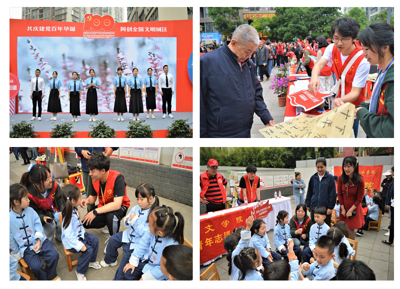 为庆祝中国共产党百年华诞,共创全国文明城区,5月8日上午,万州区2021年新时代文明实践示范活动在万州区五桥街道长龙家园广场举行。我院学工办主任兼团总支书记熊维娟参与并指导我院相关活动。