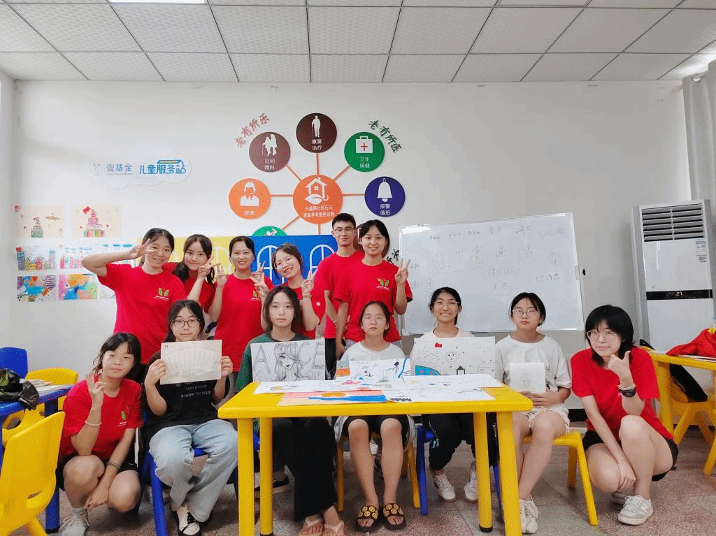 最后,促进团以“我心目中家乡的样子”为主题开展绘画活动,以培养孩子们的创新意识,增强孩子们的动手能力,促进团成员们和孩子们一起,利用水彩画笔在纸上描绘着未来家乡的样子。
