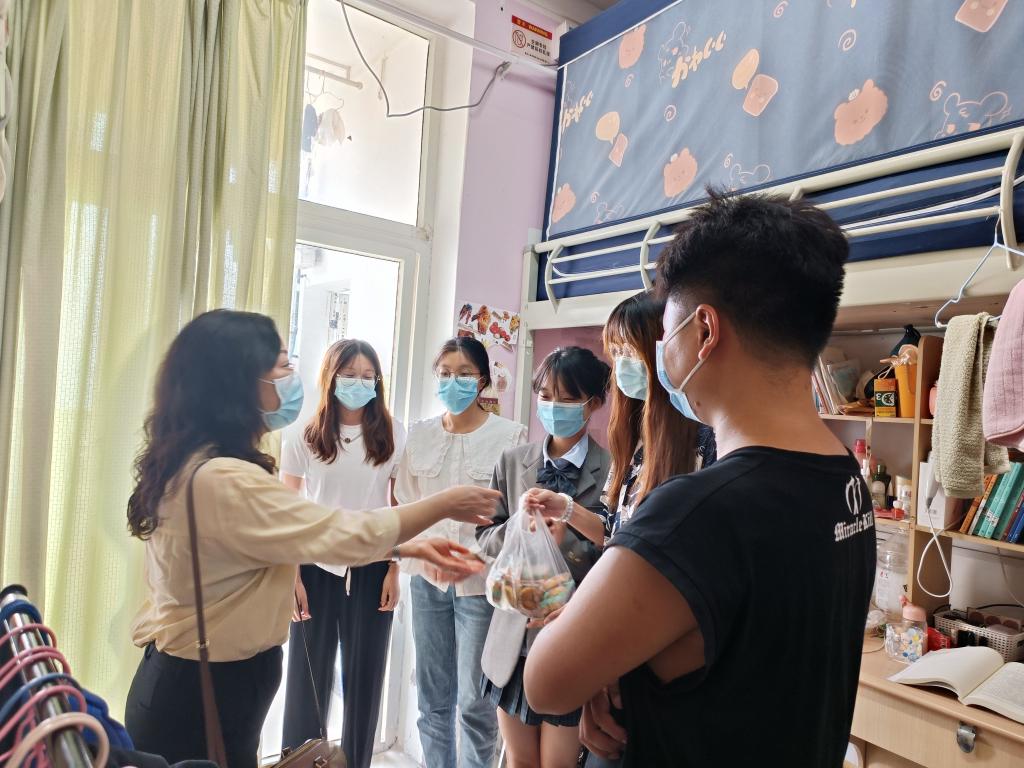 在学校疫情常态化管理及中秋节即将来临之际,太阳成集团始终坚持以学生为本,为让在校学生能感受到祥和愉悦的节日氛围,9月9日下午14:30,太阳成集团党总支书记唐晓萍、副书记、副院长马婷、副院长向学春带领全体辅导员前往集中健康观测楼栋及本科、研究生学生寝室慰问并送上月饼和节日祝福。