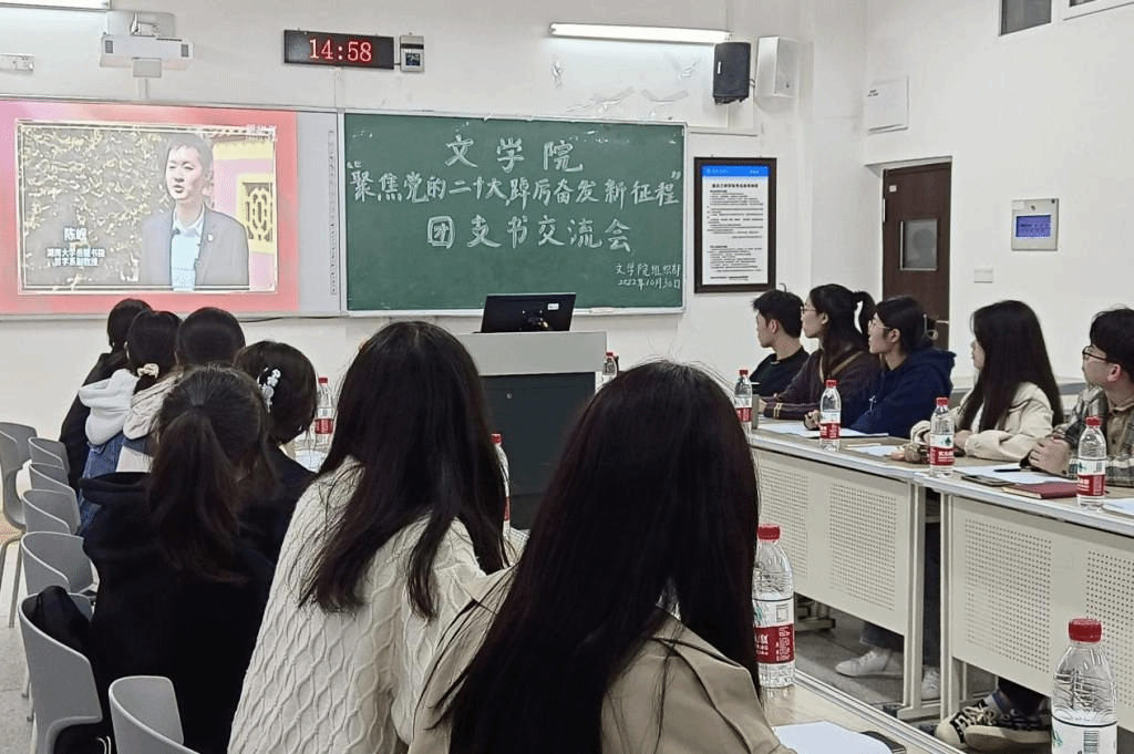 会议伊始,全体参会成员起立奏唱中国共产主义青年团团歌。其次,组织部负责人全晓勤从含义内容、意义和学习方法三个方面向参会人员领学二十大精神。接着,各班团支书认真翻阅学习二十大精神相关文件并展开深入的学习交流,以及就如何在班级进行二十大精神宣传讲解展开讨论。最后,团总支副书记秦志颖呼吁各班团支书加强精神学习,贯彻落实党的二十大精神,认真反思日常团学工作,发挥好团支部的基层堡垒作用,并以身作则,带领班级团员对二十大相关知识进行学习。