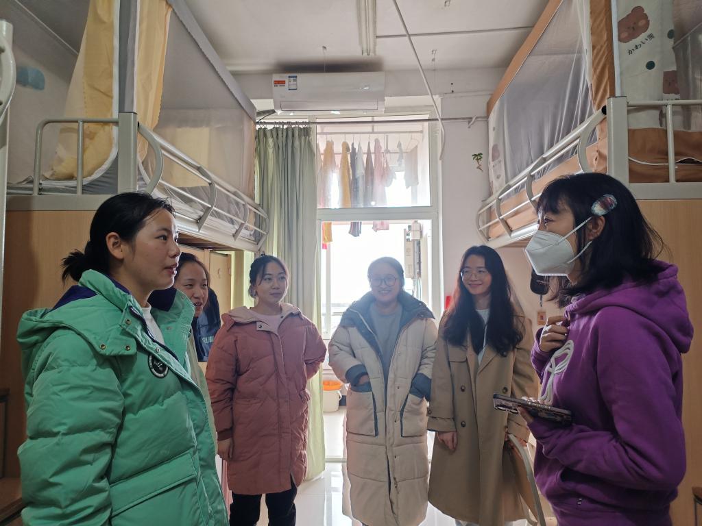 为深入了解学生思想动态和学习生活,切实做好疫情防控期间学生管理工作,11月22日中午,我院辅导员熊维娟、陈进、王陈超、刘林精深入学生宿舍,面对面了解学生线上教学、疫情防控、心理健康等情况。