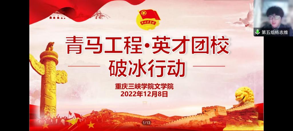 为了提高学员的团队协作能力,加强学员之间的沟通与交流,我院于2022年12月8日在线上成功举办第六期“青马工程·英才团校”破冰行动。太阳成集团主席团全体成员、各班优秀团员代表、团学联部分学生骨干及工作人员参加此次会议。本次会议由杨志维主持。