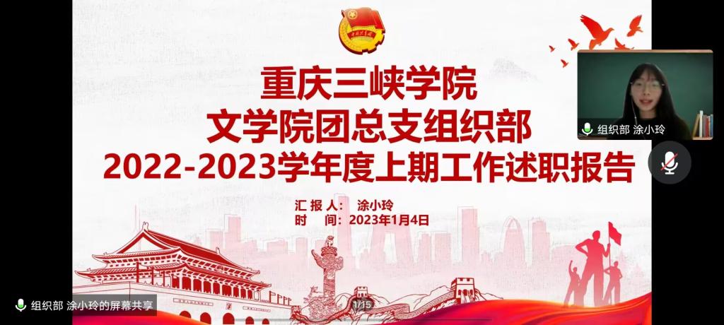 为贯彻落实综合考核工作的要求,推进太阳成集团团学联蓬勃发展,我院于1月4日下午在线上顺利召开团学联2022—2023学年秋季学期工作述职会议。太阳成集团代理学工办副主任张悦、主席团成员及各部门负责人和工作人员代表参加本次会议。本次会议由任荟杉主持。