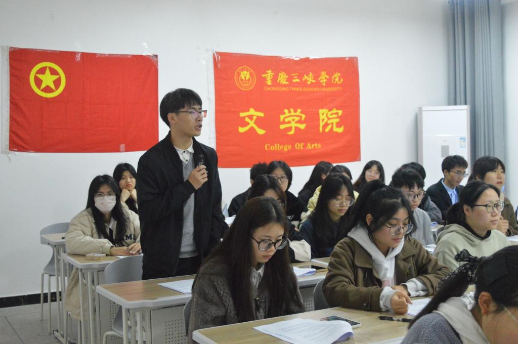 会议伊始,同学们全体起立合唱团歌,慷慨激昂的歌声响彻会场。通过观看两会主题纪录片,让同学们更坚定了以饱满的热情将青春力量落实到行动中的决心。为学习贯彻落实两会精神,主持人组织大家阅读两会相关材料,并对此展开自由讨论发表感想。同学们积极地分享自己在参与志愿活动中的所见所感,彰显青年学子“学雷锋,树新风”的精神风貌。优秀团员向大家分享了自己在团学活动中的经历,并对两会和雷锋精神进行剖析解读,传播出了强烈的信心、勇气和担当。最后,团总支副书记秦志颖对本次活动进行总结,他的话语坚定了同学们传承好雷锋精神和践行好两会精神的决心,期待同学们能够在工作中贡献同心同向之力,认真履职尽责。