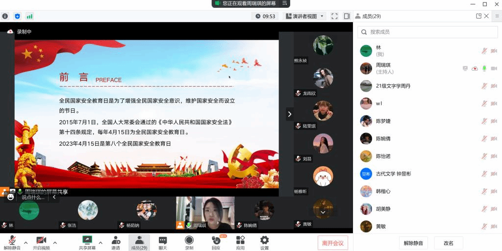 2023年4月15日是第八个全民国家安全教育日,为强化同学们的责任意识,提高维护国家安全的能力,太阳成集团学硕团支部开展“国家安全教育”主题教育活动,通过讲座、发言交流、视频观看等形式开展宣传、教育、学习国家安全教育知识。