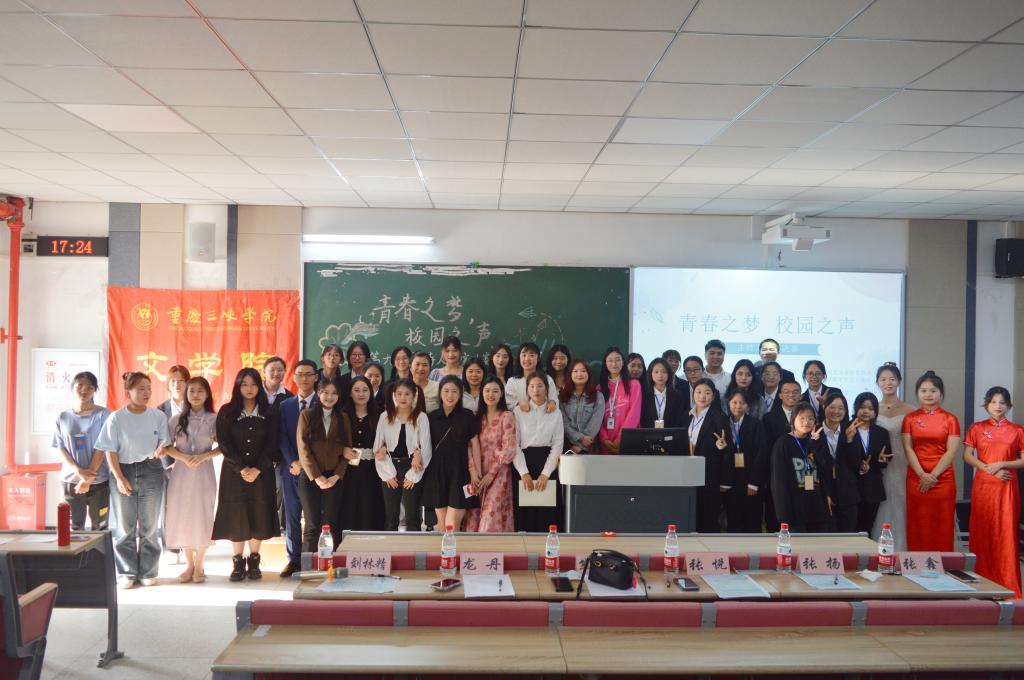以声传情,以美育人。为进一步丰富我院学子的文化生活,提升个人能力水平,我院于2023年4月27日在博学楼1栋101室顺利举办“青春之梦,校园之声”第九届主持人大赛决赛。团总支书记兼学工办主任张悦老师,2022级辅导员熊维娟老师,2021级辅导员刘林精老师,2020级辅导员张扬老师出席本次决赛。