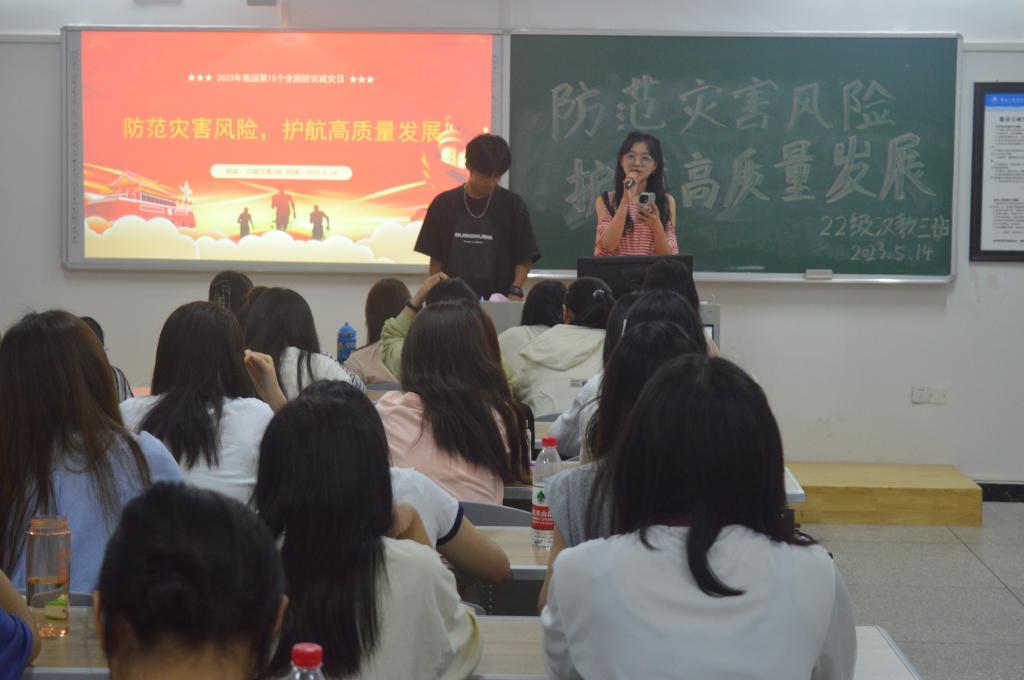 为进一步加强安全教育工作,全面推进防灾减灾知识和技能的宣传与普及,增强同学们的风险防范意识,掌握安全知识、提高自我保护意识,我院各年级于2023年5月14日晚上在博学楼开展“防范灾害风险,护航高质量发展”主题班会。