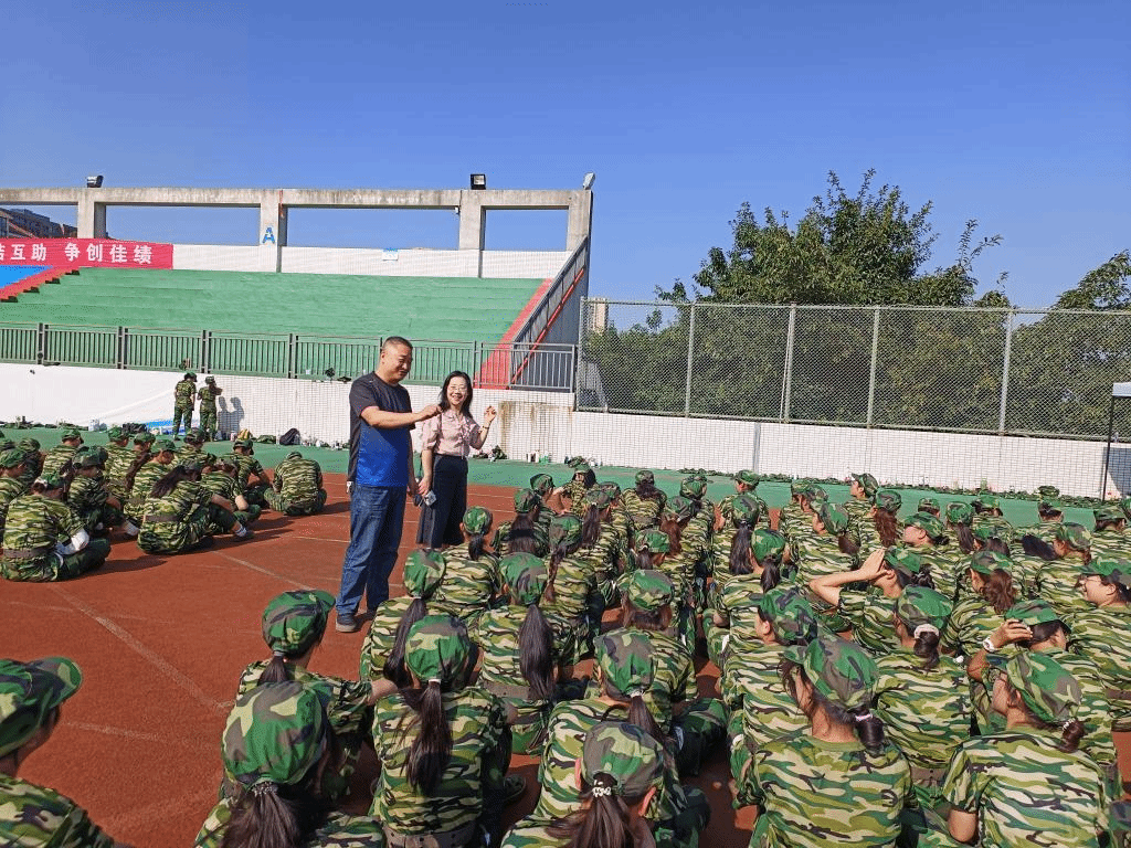 唐书记与李院长代表学院领导与大家面对面进行交流,认真观看了训练中的新生方队,了解新生军训训练科目、训练进度以及同学们的身体等相关情况,对同学们刻苦的训练给予充分肯定,鼓励大家在接下来的学习和生活中志存高远、越战越勇。