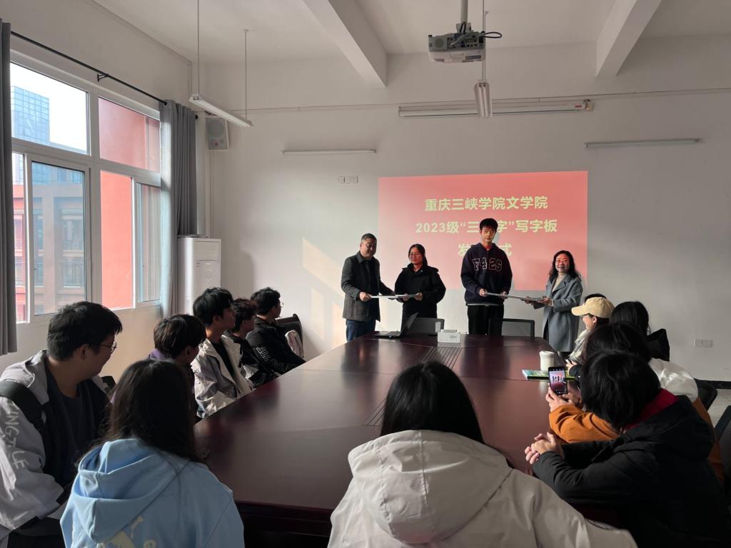 为培养我院学子良好的汉字书写能力,有效提高他们的专业技能。11月22日,我院在博学楼三栋举行2023级“三笔字”用品发放仪式。党支部书记唐晓萍、院长李俊、2023级辅导员陈进以及汉语言师范一班、二班的部分学生代表参加本次仪式。
