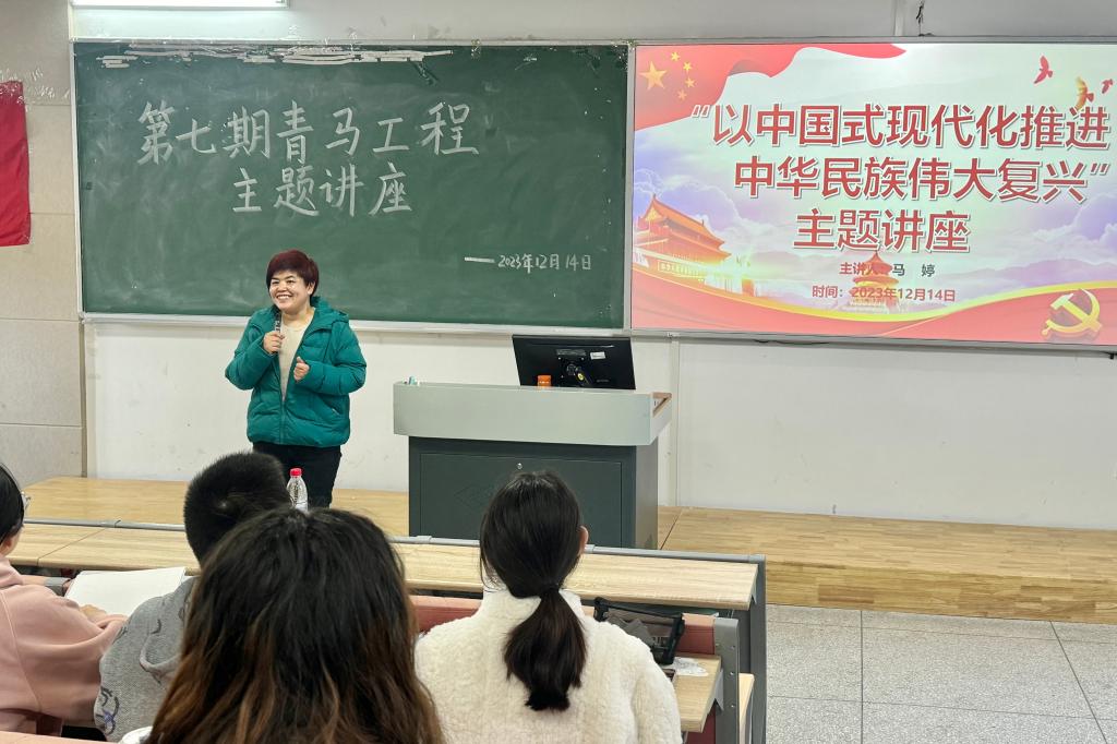 为帮助我院学子学习党的二十大精神,奋力谱写新时代新华章。12月14日下午,我院在博学楼1栋101室举办第七期青马工程“以中国式现代化推进中华民族伟大复兴”主题讲座。副院长马婷、各班优秀团员代表参加本次讲座。