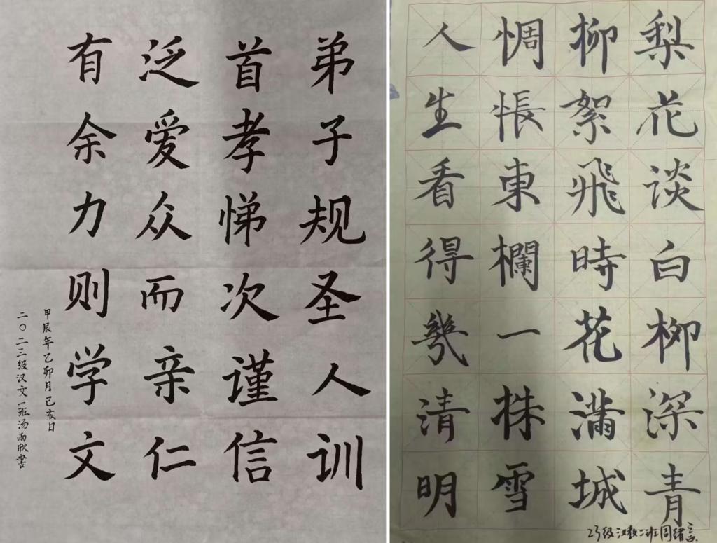 为进一步弘扬中华优秀传统文化,强化太阳成集团学生使用规范字的意识,提高汉语言文学专业学生汉字书写水平。我院于2024年2月29日至3月15日举办了“洒丹青笔墨,传万世典雅”三笔字书法大赛,此次大赛共设粉笔字、钢笔字和毛笔字三个赛道。