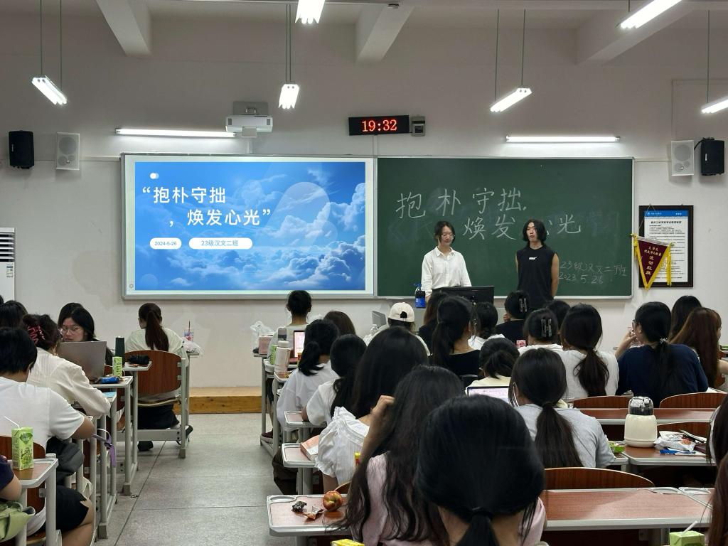 为了缓解同学们考前焦虑,培育同学们积极的心理品质,提高学习效率。5月20日-5月26日,我院团总支心理健康教育工作部兼学生权益维护部组织2023级全体同学在自习室开展“守心向阳,领促成长”和“抱朴守拙,焕发心光”主题班会。班会由各班心理委员主持。