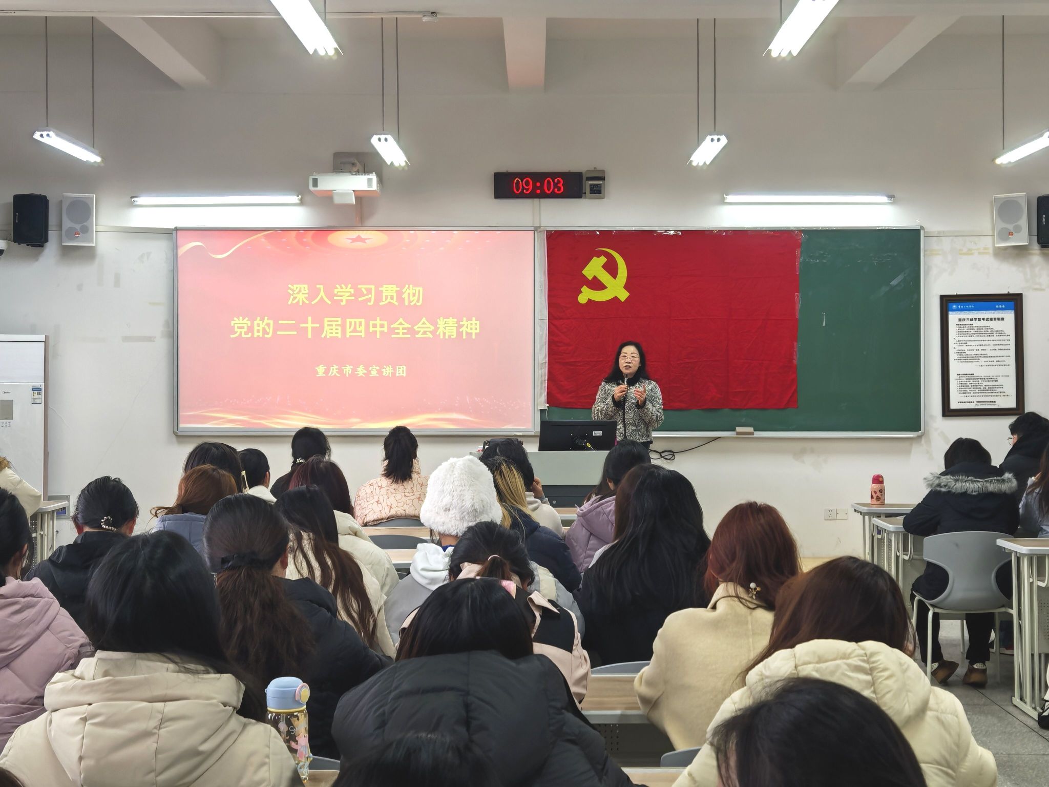 12月5日上午,学院党总支书记唐晓萍在博学楼1栋203为2023级汉语言文学(师范)1班全体学生及学院积极分子主讲专题党课。唐晓萍深入解读了党的二十届四中全会精神,围绕《中共中央关于制定国民经济和社会发展第十五个五年规划的建议》等重要内容,阐述了全会在我国迈向基本实现社会主义现代化关键时期的重大意义,阐释了加快构建高水平社会主义市场经济体制、推动高质量发展、加强科技创新等战略部署。她紧密结合学校工作实际,引导学生将个人理想融入国家发展大局,积极响应时代号召。互动环节中,唐晓萍还就学生关心的就业前景、职业发展等问题,结合全会精神进行了细致解答。与会学生表示,宣讲加深了他们对国家大政方针的理解,明确了奋斗方向,激发了将学习热情与实践报国相结合的决心。