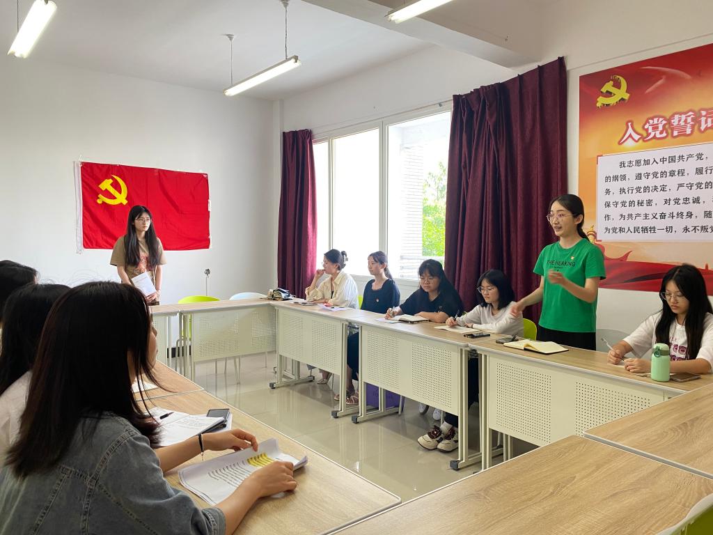 党员代表陶雯同志以“学纪、知纪、明纪、守纪”这四个方面进行领学,向大家讲解了《中国共产党纪律处分条例》的修订目的和背景、基本精神以及主要变化等内容。她强调,作为一名学生党员,要明确加强党的纪律建设的重要性,始终牢记党的纪律,注重自身党性修养的提升,从根本上筑牢遵规守纪、清正廉洁的思想防线,把党的纪律刻在心上,时刻紧绷纪律规矩这根弦,严格遵守国家法律法规,守住纪律“底线”,切实发挥好共产党员的先锋模范作用。接着,支部委员对新修订的《中国共产党纪律处分条例》第一编内容进行了领学,使得同志们对党的纪律要求有了更加全面、准确的理解和把握。