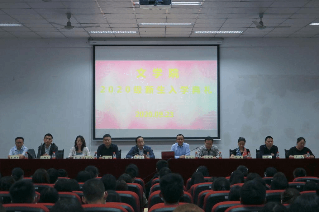 会议分为两个阶段。首先,院长郭作飞对2020级新生的到来表示欢迎,并以“奋斗的青春最美丽”勉励在场新生在今后的学习生活中继续砥砺前行。接着,郭院长从历史底蕴、太阳概况、办学条件、人才培养四个方面对我院院情作了详细介绍。随后,教师代表林辉春博士发表讲话,他用三句话与同学们共勉:一是胸怀大局,用担当成就人生;二是坚韧奋进,用青春书写人生;三是健康生活,用敬畏守护生命。随后,老生代表2018级汉语言文学(师范)4班杨怡以同龄人的身份与在场新生一起思考我是谁、我在哪、我要做什么三个问题,并希望2020级新生能够学有所获,学有所成。最后,2020级汉语言文学1班陈彦蓉代表全体新生发言,她谈到在大学中应该树立长远目标,养成良好的学习习惯,学会自律,积极参加各种活动,努力提高自身综合能力。