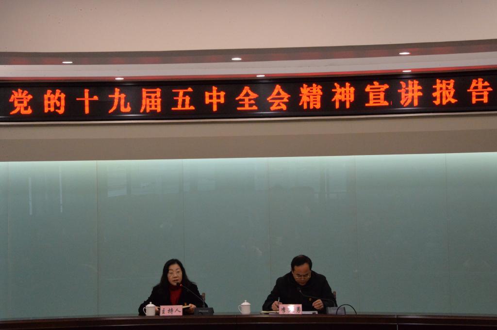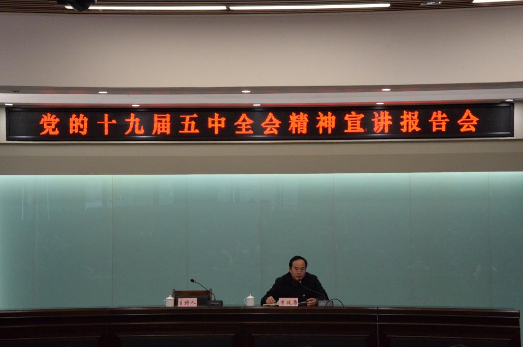 12月4日下午,学校党委书记李廷勇在科技楼二楼连廊会议室作了题为《奋进新时代 开启新征程》的党的十九届五中全会精神宣讲。机关一总支二支部、研究生处党总支、太阳成集团全体教职工及学生代表到场聆听宣讲,宣讲会由太阳成集团党总支书记唐晓萍主持。
