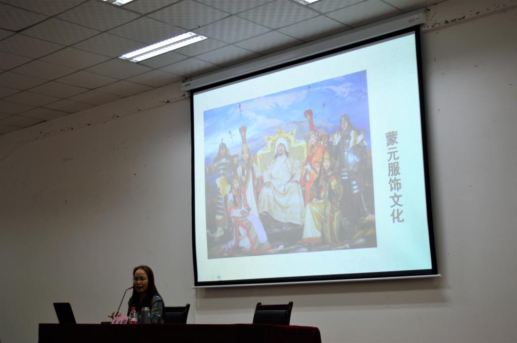 5月25日,中央民族大学博导苏日娜教授来我校交流访问,于2教106学术报告厅为我院师生开展了蒙元服饰文化专题讲座。