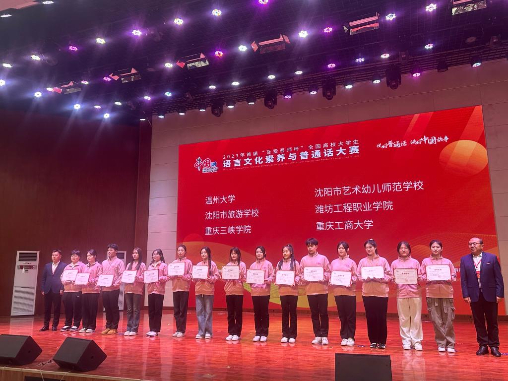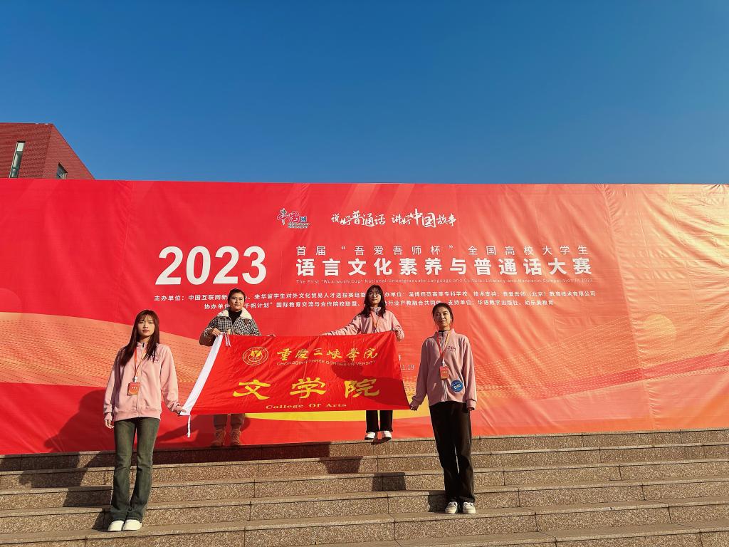 由互联网新闻中心和来华留学生对外文化贸易人才选拔赛组委会共同主办,淄博师范高等专科学校承办,吾爱吾师(北京)教育技术有限公司提供技术支持,千帆计划"国际教育交流与合作院校联盟、全国托幼行业产教融合共同体协办的2023年首届"吾爱吾师杯"全国高校大学生语言文化素养与普通话大赛决赛于11月17日——11月19日在山东淄博师范高等专科学校举行。赛事吸引了全国高职组、中职组、本科组、国际组共计48支队伍参赛,我院由马瑞瑞、王馨婕、谭清云组成的团队代表参赛。
