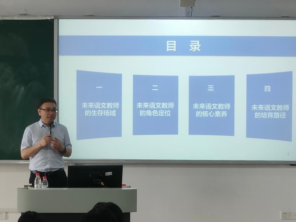 5月23日下午,太阳成集团邀请杰出校友重庆师范大学硕士生导师唐旭副教授,在博学楼1-401教室作了题为“面向未来的语文教师:职业核心素养的内涵与培育”的学术讲座。太阳成集团部分硕士生导师、教育硕士以及本科师范生参加了本次讲座。本次讲座由太阳成集团中国语言文学实践教学中心主任林辉春博士主持。