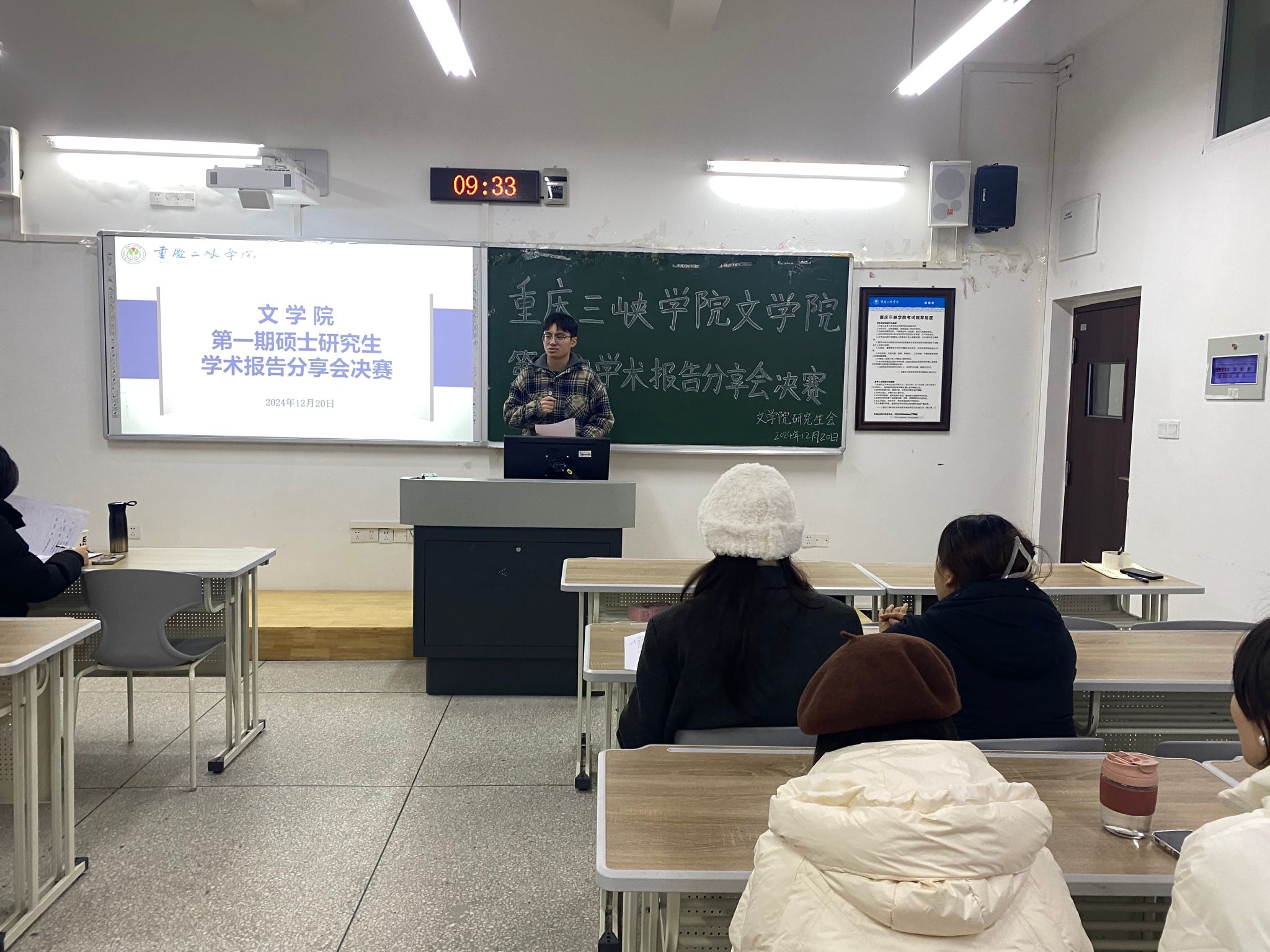 经过初赛的激烈角逐,共有9名选手晋级决赛。决赛现场,选手们精神饱满,态度严谨,汇报内容涵盖了文学、教育学、地域文化等多个学科领域,既有深入的基础理论研究,也有丰富的教学实践探索。汇报中选手们充分展现了扎实的学术功底、良好的语言表达能力,同时也引发了在场同学们对学术问题的深入思考,有效促进了学术的交流与碰撞。