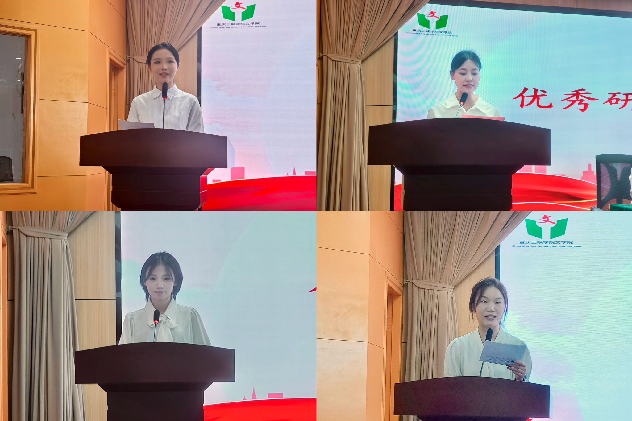 典礼第四项,优秀研究生代表皮佳佳上台分享。她回顾一年来的成长,感谢学院提供的优质资源和老师的悉心指导,并且建议同学们认识自我、做好规划,坚持学习、勇于创新,积极参与实践、创造价值,祝愿新生勇敢追梦、不负青春。