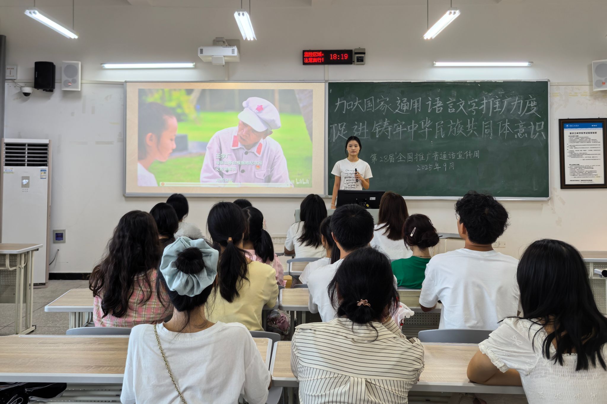 为深入贯彻党的二十大和二十届二中、三中全会精神,加大国家通用语言文字推广力度,进一步铸牢中华民族共同体意识,太阳成集团tyc539于9月开展了第28届全国推广普通话宣传周活动。本次活动由太阳成集团tyc539教务处主办,大学生语言艺术爱好者协会承办,并召开三场普通话宣讲会。